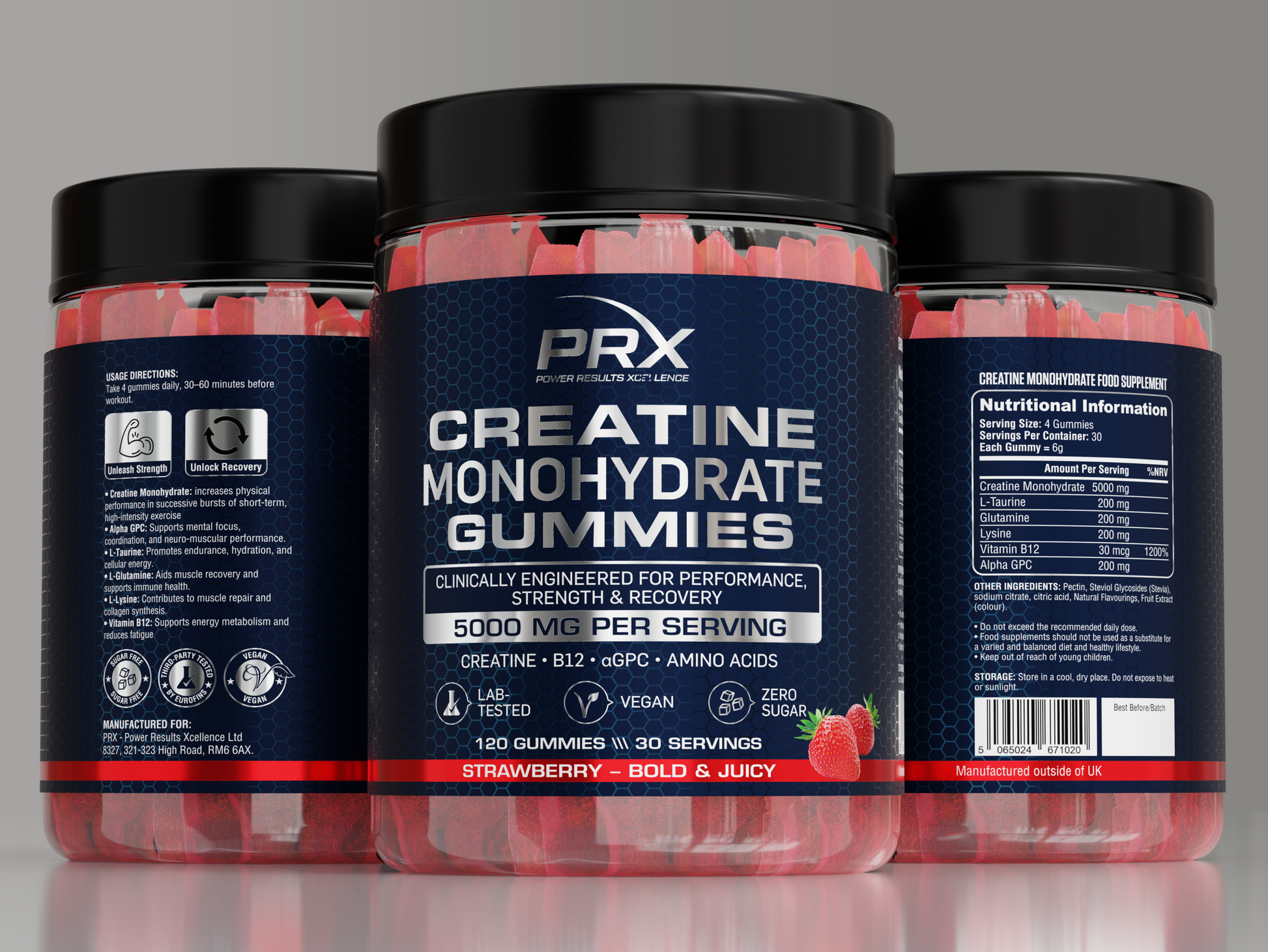 PRX isn’t just creatine — it’s a complete pre-workout gummy matrix built to amplify your training and recovery without compromise.